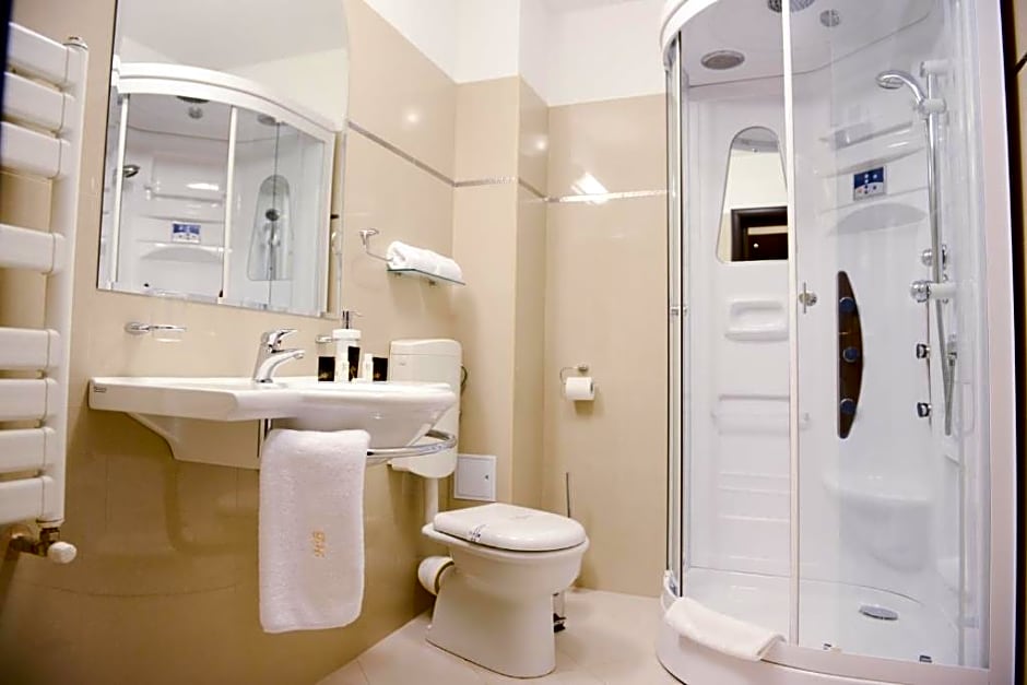This room offers a flat-screen TV with cable channels, a desk, a telephone, a mini-bar and a bathroom with hydro-massage shower, free toiletries, a hairdryer, slippers and bathrobe.